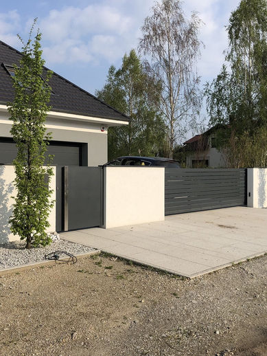 Die modernen Zäune von Xcel charakterisieren sich durch die schlichten Formen, welche sich perfekt an die Formen Ihres Hauses anpassen lassen.