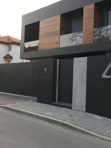 Wir verwenden Aluminiumblech, Quarzsinter und Glas für die Fertigstellung von Toren und Pforten. Arete Pure-Produkte passen perfekt zu vertikalen Pfosten von Arete Vertico und Wänden von Rockina Cubero. Das einzigartige Design des Systems ermöglicht die Schaffung diskreter Pforten in der Wand, die beispielsweise in den Raum mit Mülleimern führen.